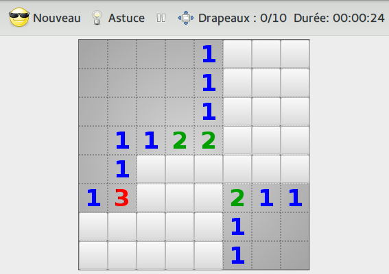 Faites la même chose (éditer, compléter, compiler, exécuter, tester) avec le fichier demineur.cpp pour implanter le jeu du démineur du TD.